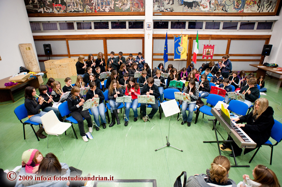 "Auguri in musica ...e non solo" è il tema dello spettacolo dei ragazzi delle scuole medie che si è svolto ieri sera nella sala consiliare. Una serie di saggi musicali ha salutato il rientro di Massimiliano Olivo nel corpo insegnati a Fiumicello. Ne è seguita una particolare recita mimata diretta da Michela Vanni che ha divertito non poco i genitori degli alunni che hanno gremito la sala.