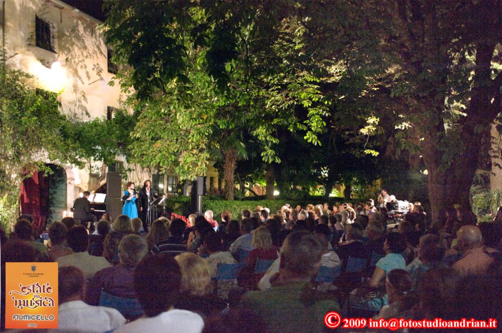 Nella splendita e suggestiva cornice di Villa De Franzoni in Borgo S. Antonio ha avuto luogo ieri sera lo spettacolo "Concerto d'Operetta in una sera ... di mezza estate". Tutto esaurito e apprezzamento totale, lo si è notato dagli interminabili applausi, per il Gruppo D'altro Canto con Elena Pontini, soprano; Massimo Devitor, tenore e Alessio De Franzoni al pianoforte che da qualche anno ci fanno rivivere l'operetta. La serata è parte del programma "Estate in Musica" organizzato dall'Amministrazione Comunale. Il prossimo appuntamento è per lunedì 10 agosto nella chiesa di S. Lorenzo.