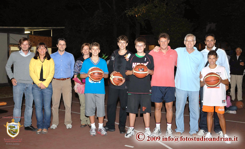 Con una semplice cerimonia di saluto, l'Assessore Vittorino Feresin ha dato il via, ieri sera, al terzo Torneo delle Associazioni che dopo il calcio e le bocce quest'edizione vede protagonista il basket. Il Sindaco Ennio Scridel ha portato il saluto e l'augurio dell'Amministrazione Comunale e il Presidente dell'Associazione Basket, Corrado Pipp ha raccomandato la lealtà nel gioco. La gara è iniziata con le Associazioni "Chi di Sa' Lorenz" e la "Coop. Agricola Fiumicello" con un risultato di 6 a17. E' seguito l'incontro tra la "Soc. Pallavolo" e il "Tennis Club" con un risultato di 6 a 20. Infine hanno gareggiato le società "Pattinaggio/Basket" e "A.F.D.S. Fiumicello" con il risultato di 16 a 23. Nelle foto, la cerimonia d'inizio, alcuni momenti delle gare e i tre giovani arbitri.